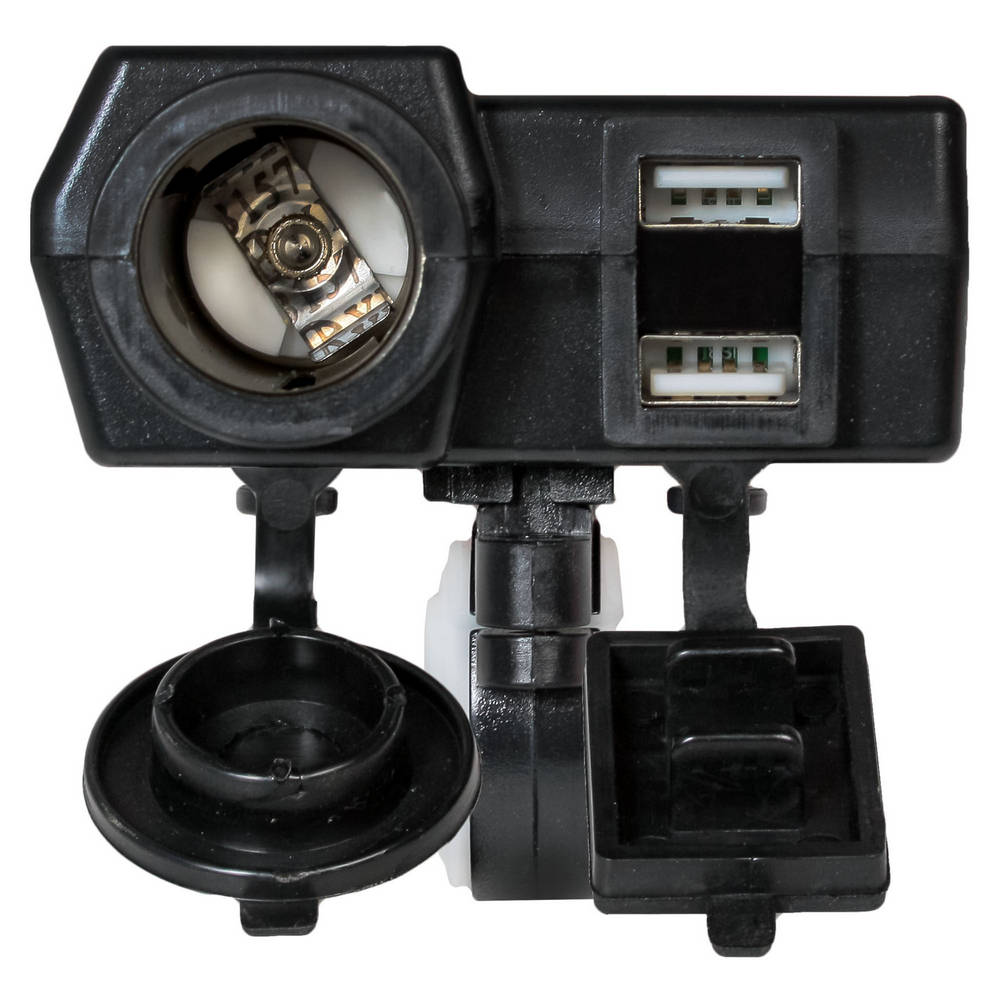 Устройство оборудовано заглушкой блока USB и прикуривателя, чтобы влага не попала в розетку. Также розетка оборудована вольтметром, что позволит вам следить за напряжением бортовой сети.