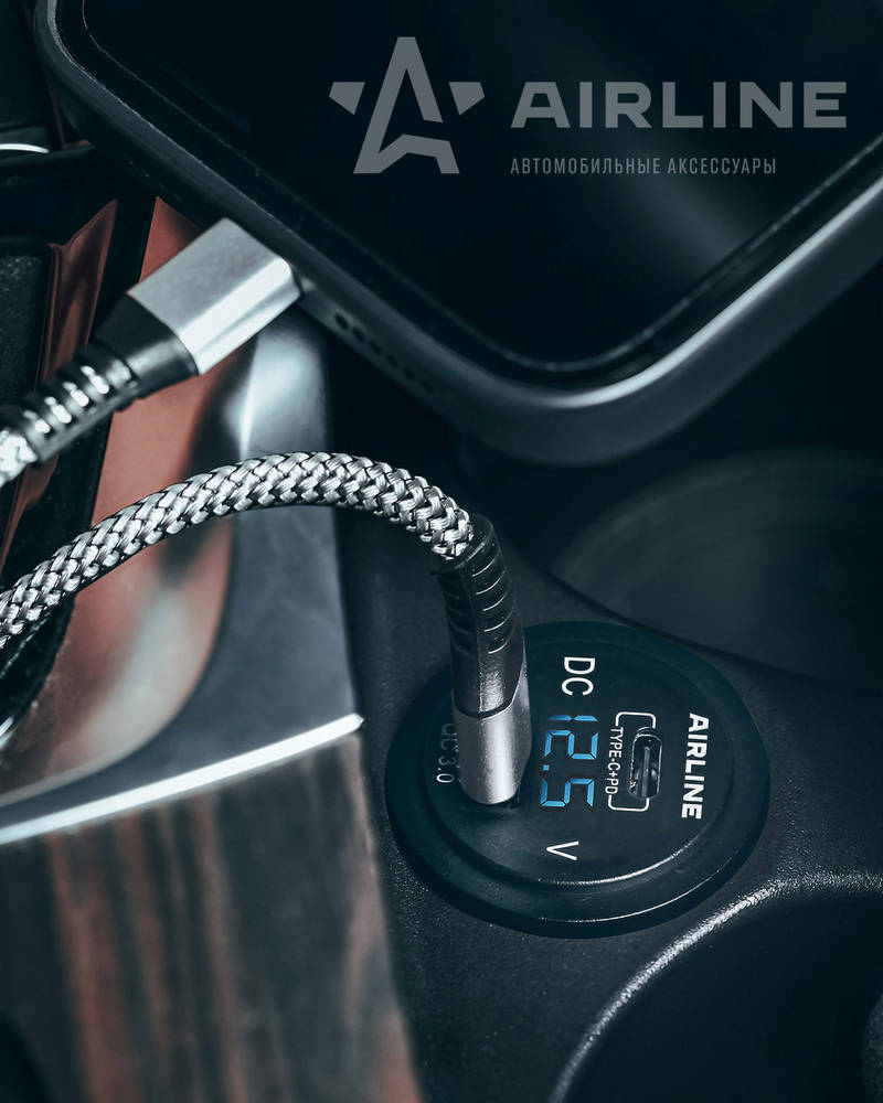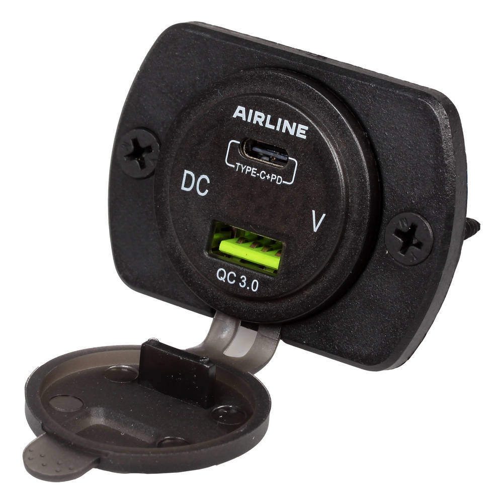 Розетка USB встраиваемая влагозащ. с 2 портами и вольтметром (5В, QC3.0 + Type-c PD) AEBJ200 AIRLINE